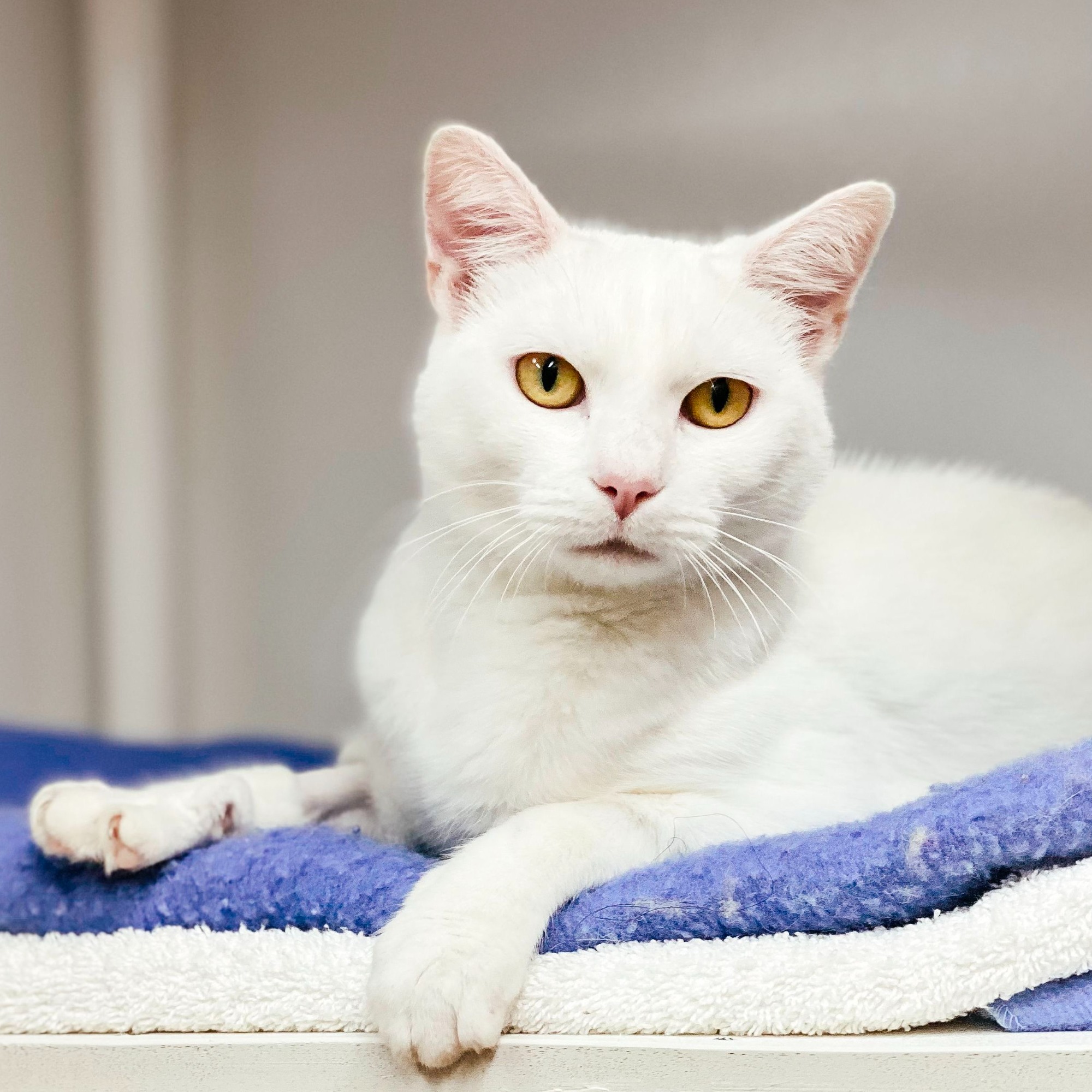 The Lort Smith team have noticed that I am most likely deaf. I was transferred to Lort Smith from another animal welfare organisation, so my background is a little bit mysterious. However you can be assured that I’m a really lovely cat!