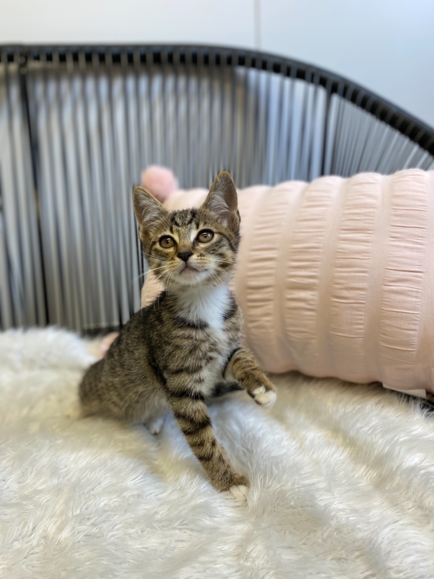 Penny is a 9 week old Female Domestic Short Hair Kitten. Penny is the most playful and cheeky of her siblings and loves to play with her toys. Her favourite toy is her wand toy with a bell on it! Penny and her brothers were named after the Big Bang Theory!