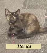 Miss Monica Joy has a ‘purrer’ that never gives up. She loves to play with her siblings and was raised as a bottle fed baby. She demands to be cuddled and petted when not about her private cat business. Monica is a superb kitten and will give her special person lots of love.