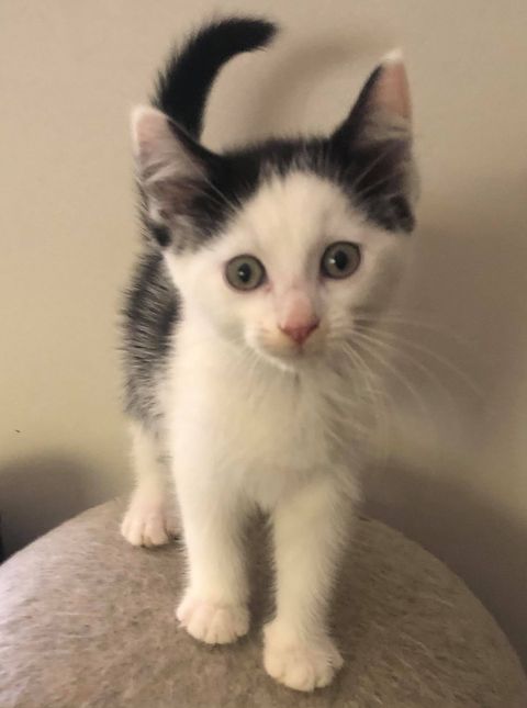 This sweet boy is now available for adoption. All he wants is love and to be with you all the time. He is ok with kids of all ages, other kittens and cats but hasn’t really been tested with dogs. This little man needs to be an indoor home only or access to a shaded cat run due to his white nose.