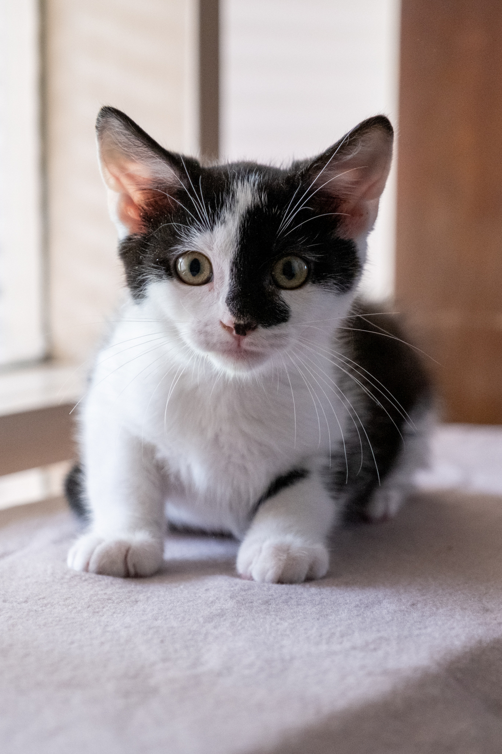 Bam-Bam is the out-going adventurous one. He loves to explore and find new places to investigate. He also loves to play and chase bell-balls around the house. Bam-Bam is a super snuggler, loving the attention. He would be better suited to a home with other animals to hang out with or someone who is home more often.