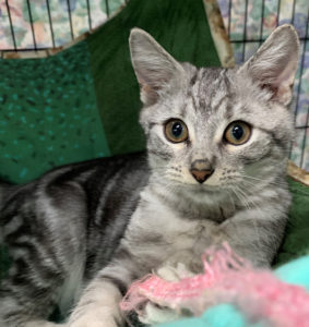 Rodger is a male silver tabby kitten who is cuddly and adorable. He is healthy and normal and ready to be taken home.