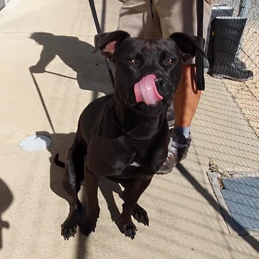 She is super friendly with people, and a little unsure of other dogs at first, but may suit a male doggy pal pending an introduction.