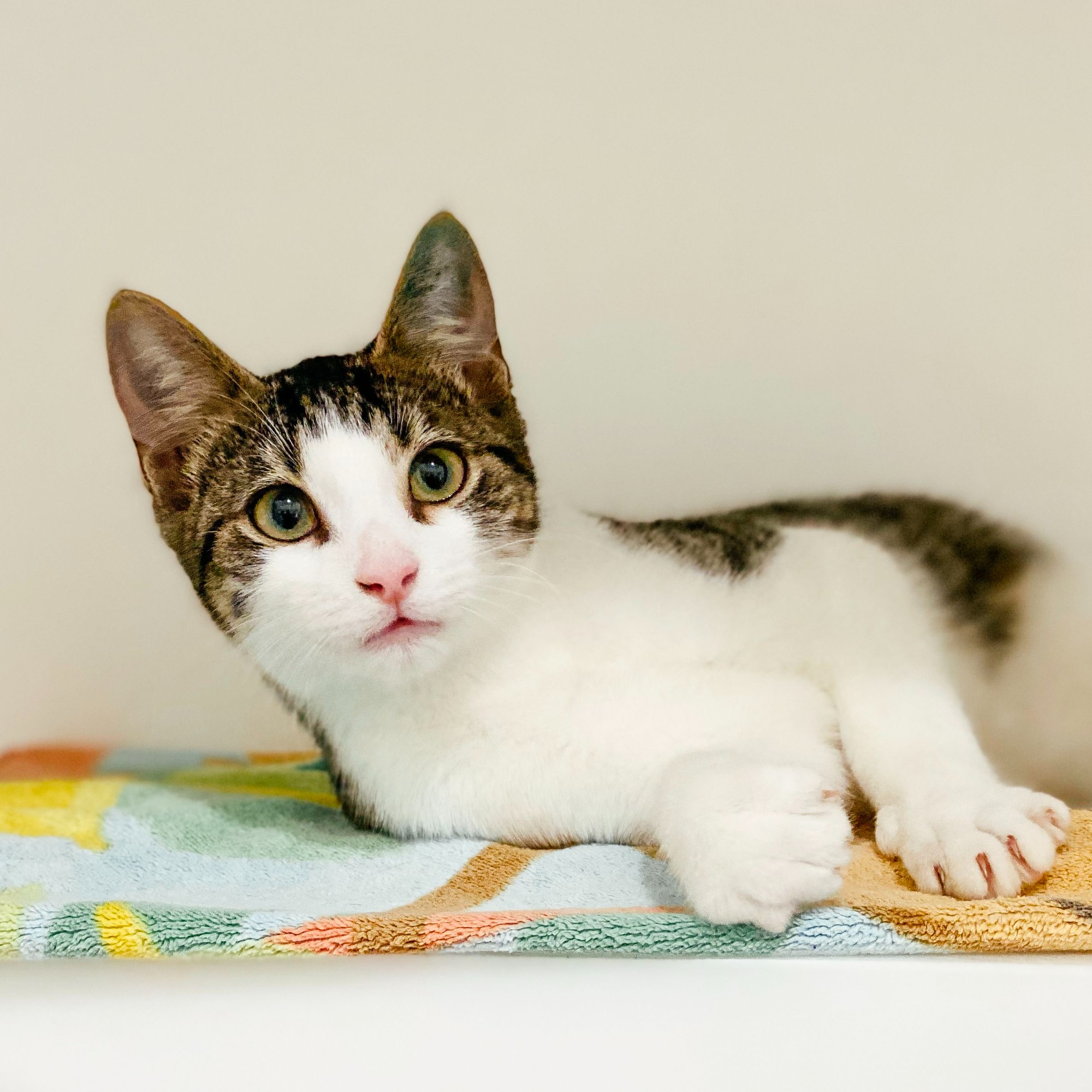 I love to play with toys and climb scratching posts, I’ve got a lot of energy and I’m a very inquisitive boy.