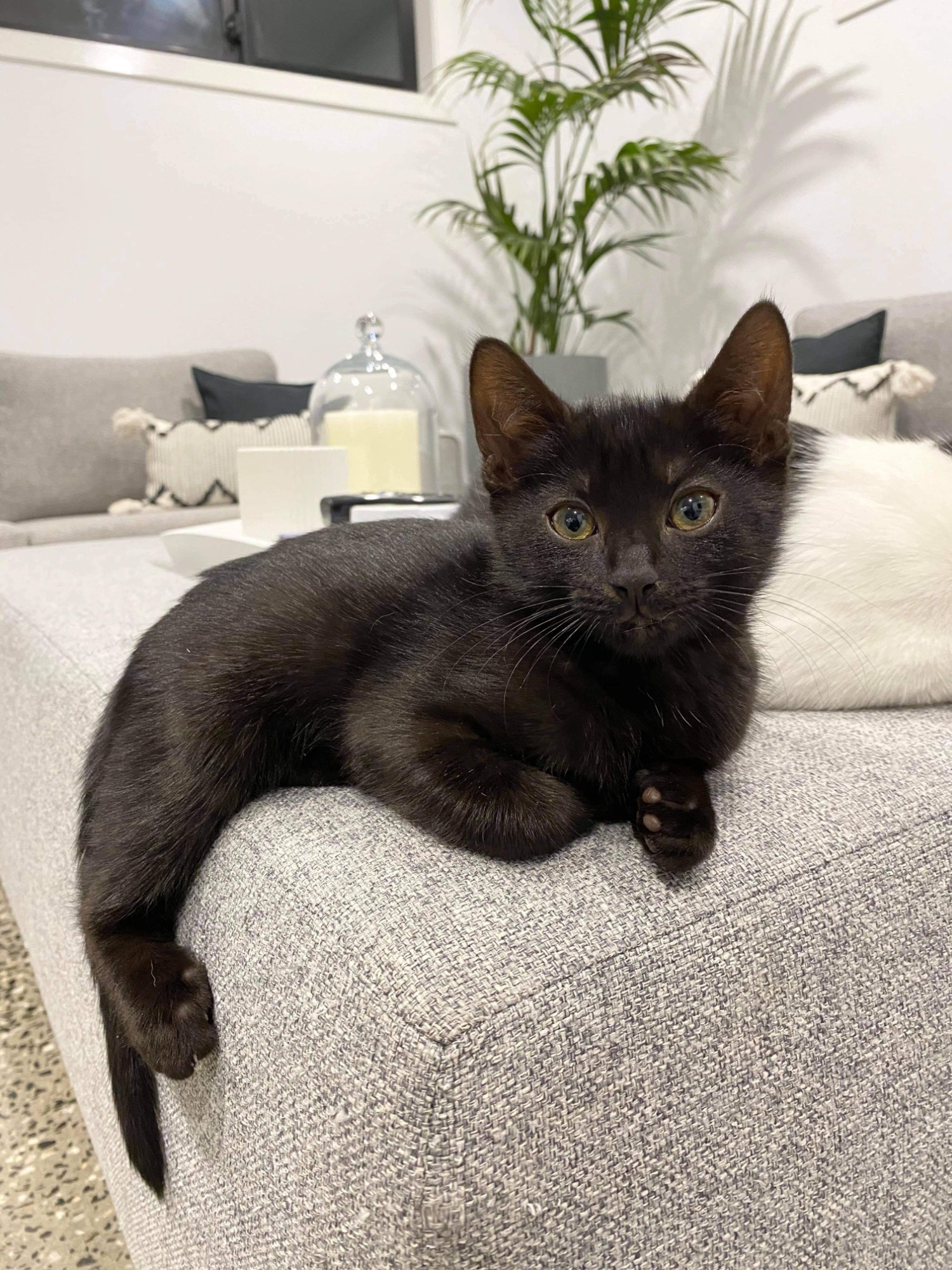 Like any kitten, she is very adventurous and loves to play and explore around the house. Her favourite toy is a ball which she will happily entertain herself with by rolling it around the house.