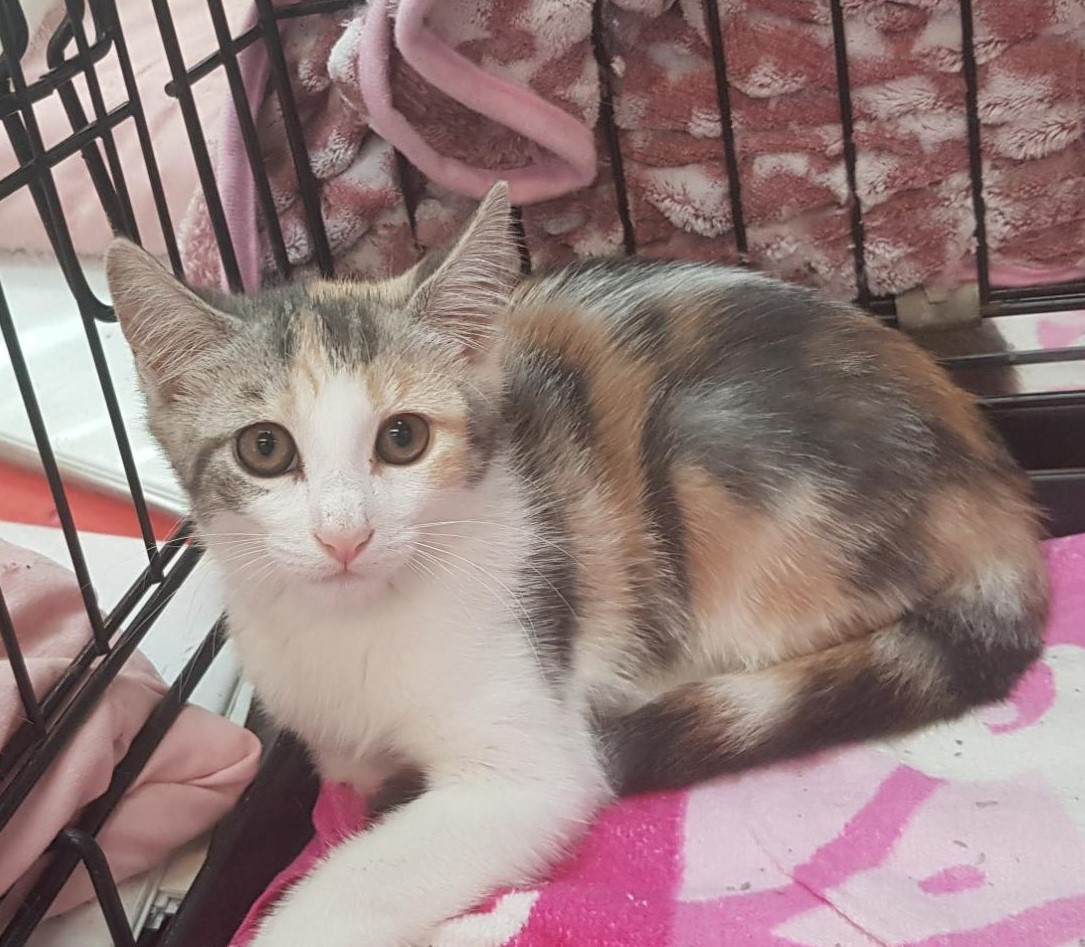 This is kitty Kerry, she and her sister Katie are sweet and timid little girls who're desexed, microchipped and vaccinated. They are only 12 weeks old and would make wonderful additions to your home.