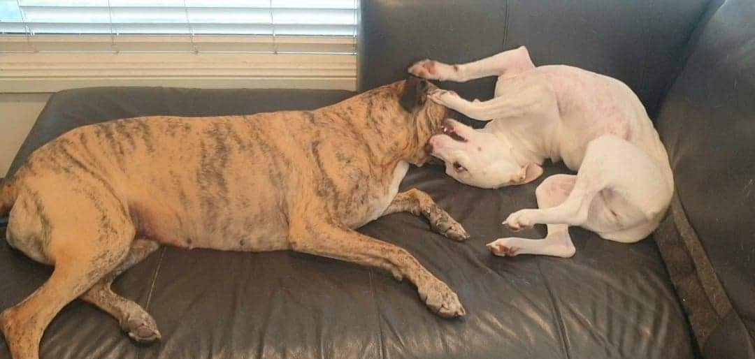 Her foster mum Shannon and fur sibling love having her around. Shannon has said that Tilly would make a great little companion once she is shown love and care. Brandi loves playing with little Tilly followed by a snooze 🥰
