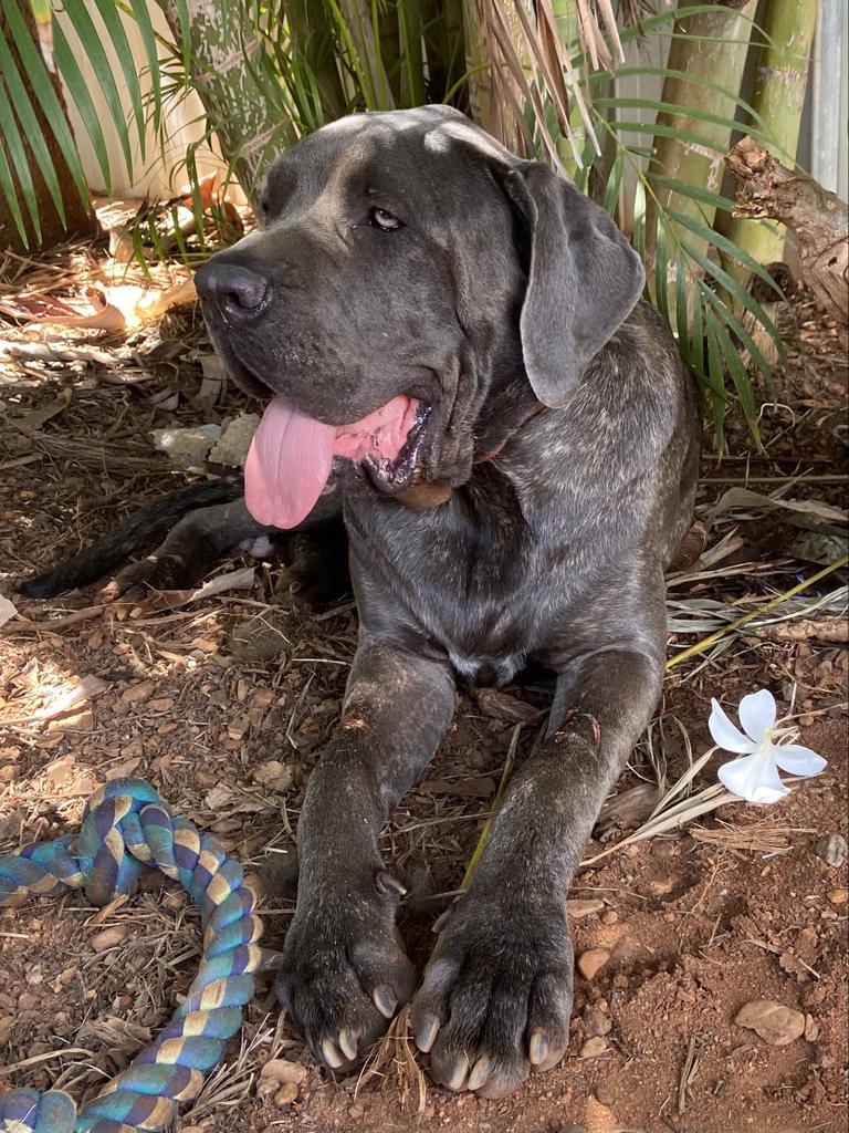 Odin is a super affectionate and loving mastiff cross ready for a new home. Odin is well socialised and gets on great with other dogs and is good with cats too. He is a big and playful boy so we recommend kids over 12 or who are used to big dogs who think they are still lap dogs. He is a typical big pup that just wants to play and be with his friends all day. Odin is looking for a family who have time for him. Time to play games, run and walk, and simply hang out at nap time.
