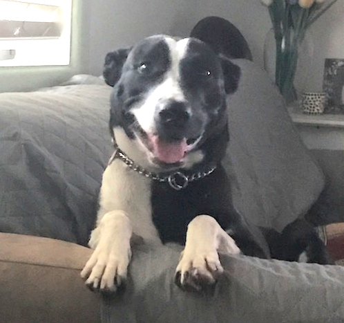 Meg is a quiet, loving, Border Collie cross Bull Terrier with maybe a few other breeds in there, and we believe around two years old.