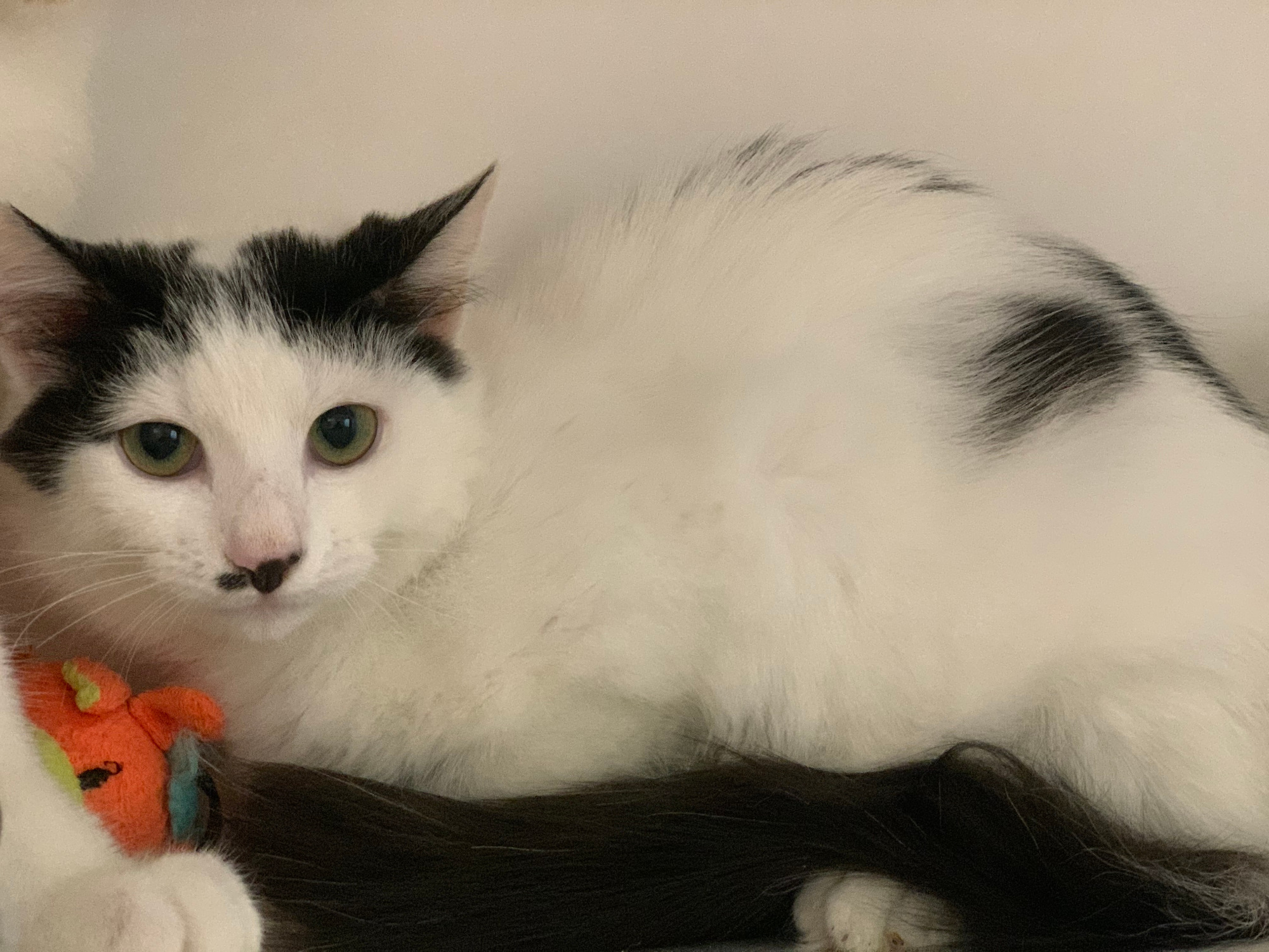 So cute with her little nose smudge, Maelie has this look of innocence about her and is so sweet when you meet her! She can be shy and a bit grumpy sometimes, but when you've grown up on the streets it's understandable not to "get" the pet life straight away. She's looking for a family where she can take a minute to catch her breath before settling in and warming up to love and affection.