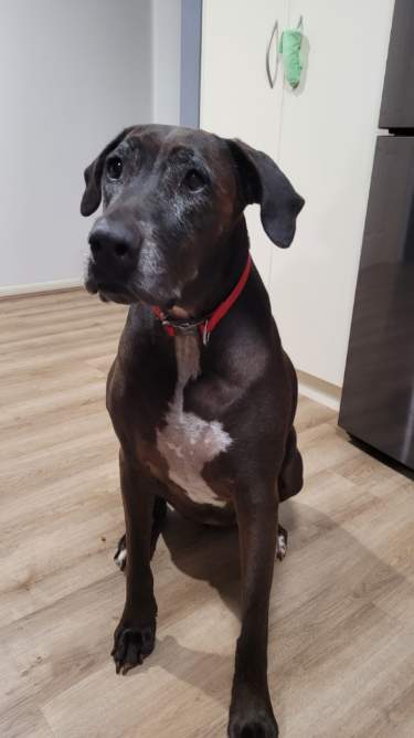 Coco is looking forward to her new forever home with lots of cuddles. She sleeps inside in the laundry and needs a good size yard or good walks but be extra strong when you walk her because she is a big dog and she likes to get over excited and to bark at every other dog!