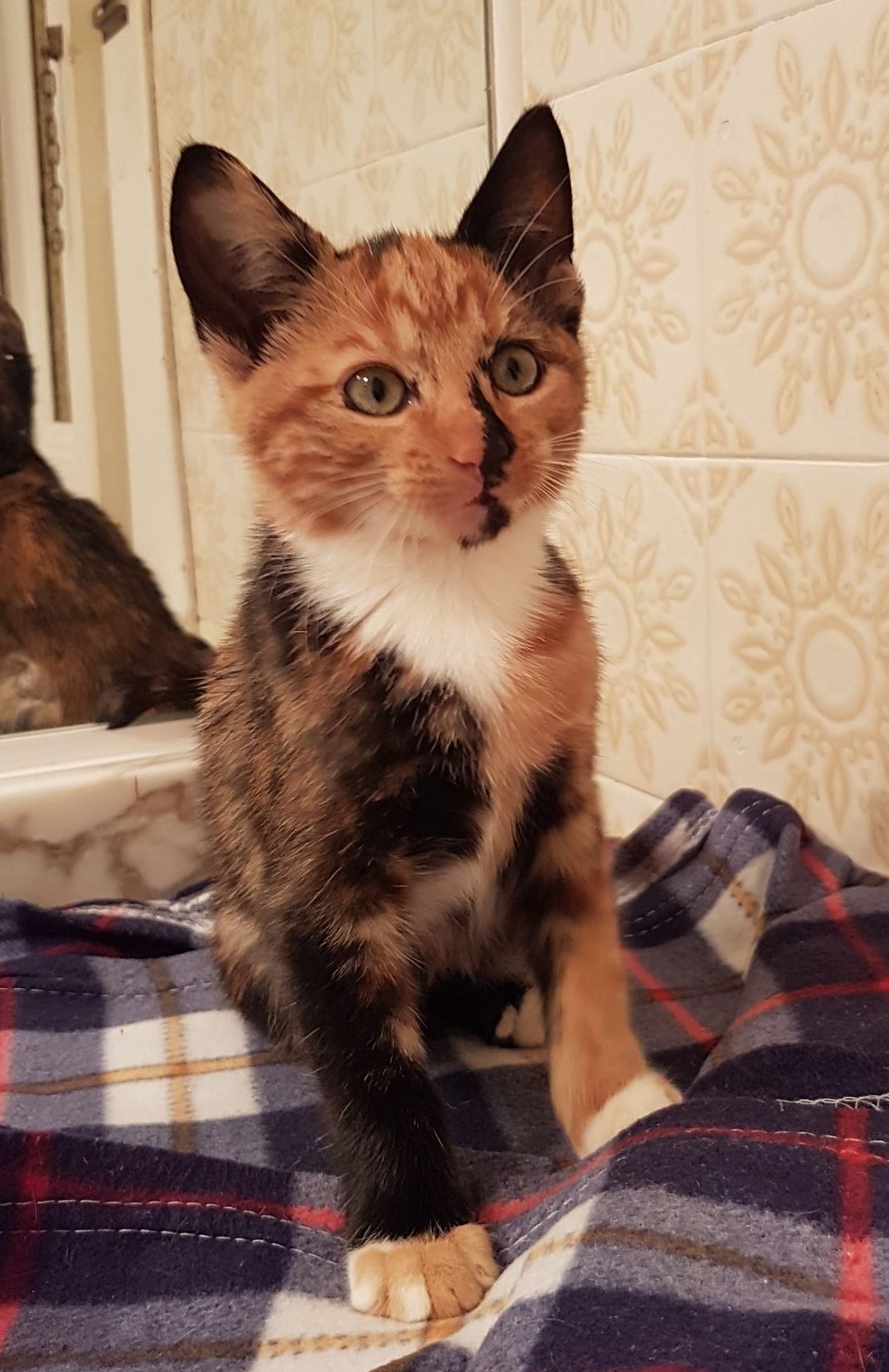 Her spectacular colouring is testament to the individual she is. She loves nothing better than a good snuggle and has a real ' motor boat' purr. (Did you know purring is scientifically proven to lower blood pressure? So she is even a HEALTH aid.....)