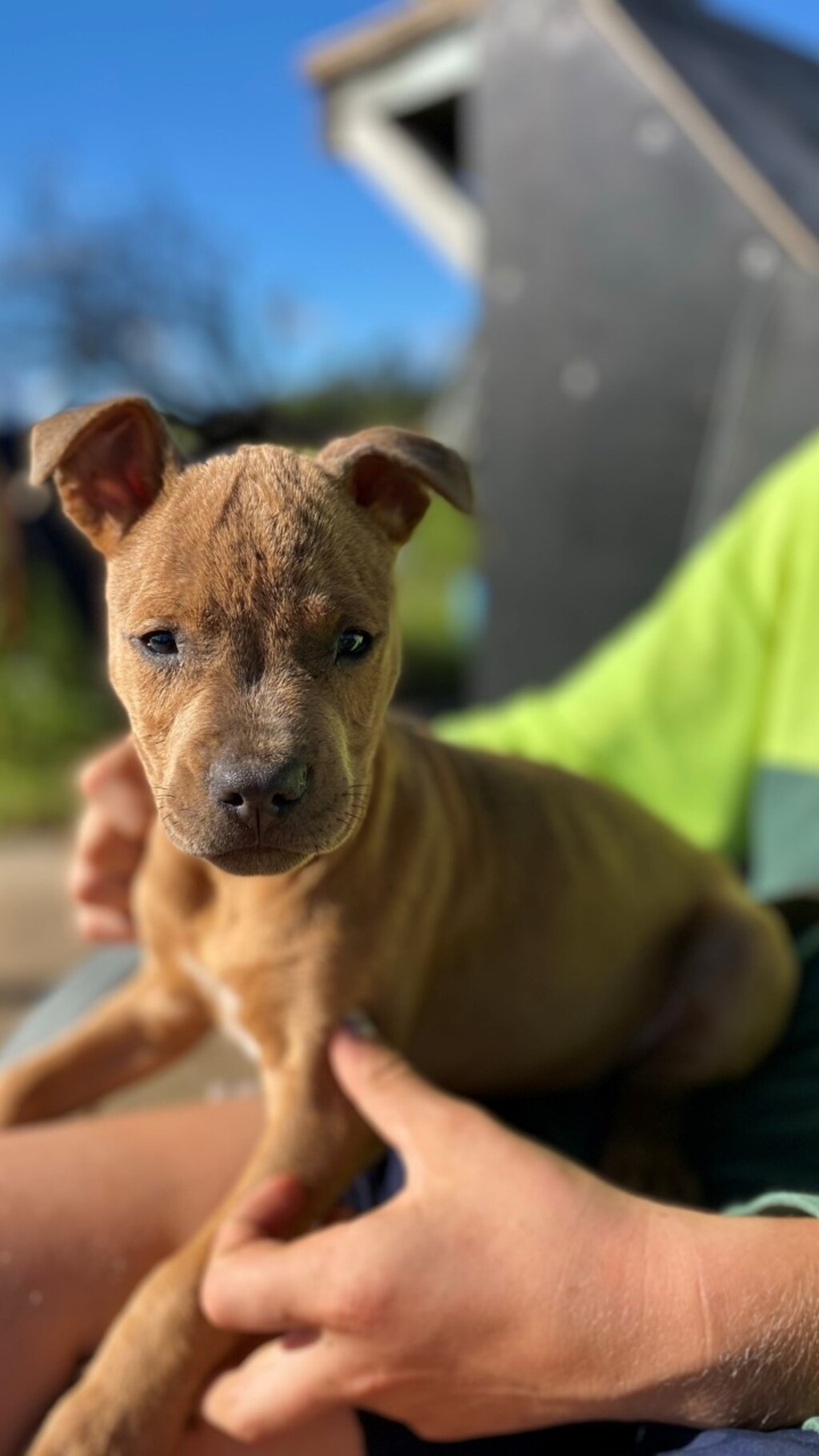 Meet the amazing WALLY #2728. This little fella came to us at just three weeks old - he was the runt of a litter and was not getting enough sustenance from his mother and was being pushed around by his littermates. Since that moment he has absolutely thrived and turned from alien being (check out the photos) to superdog Wallster! Wally is just the most energetic bundle of playfulness and love and would suit an active person who can take him places and spend lots of time with him. We do think, though, that he has some vision impairment (almost like he is very short sighted) and his new home will have to be prepared to work with him to make sure he is well trained and comfortable in his surroundings. He will definitely need a home that is experienced with dogs. He was reunited with two of his littermates (Waldo and Wilbur) at around 6 weeks old and loves their company, though is still half their size! He would probably do well with an older, patient, dog at home especially if he was to be left by himself often. If you think you are the right fit for this little fighter please give us a ring. He is now 9 weeks old. Wally will be desexed, chipped, vaccinated, worm/flea treated and vet checked.