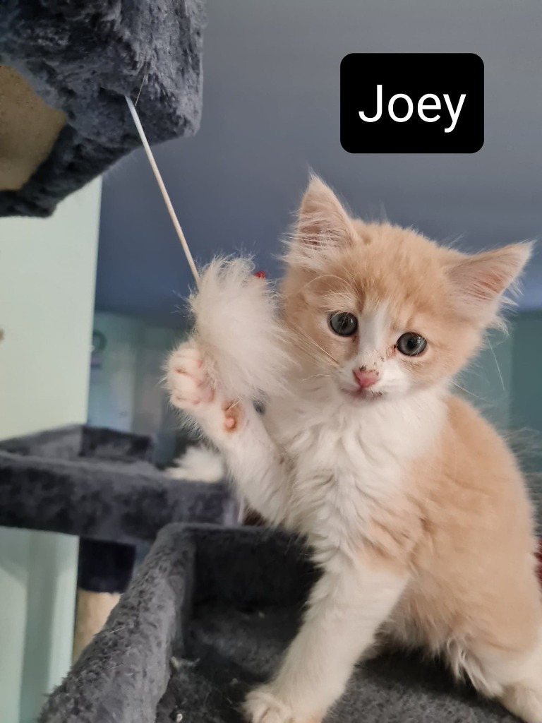 He does love to play with his foster brothers and sisters and loves to chase around a ping pong ball. Joey is long haired and will need grooming.