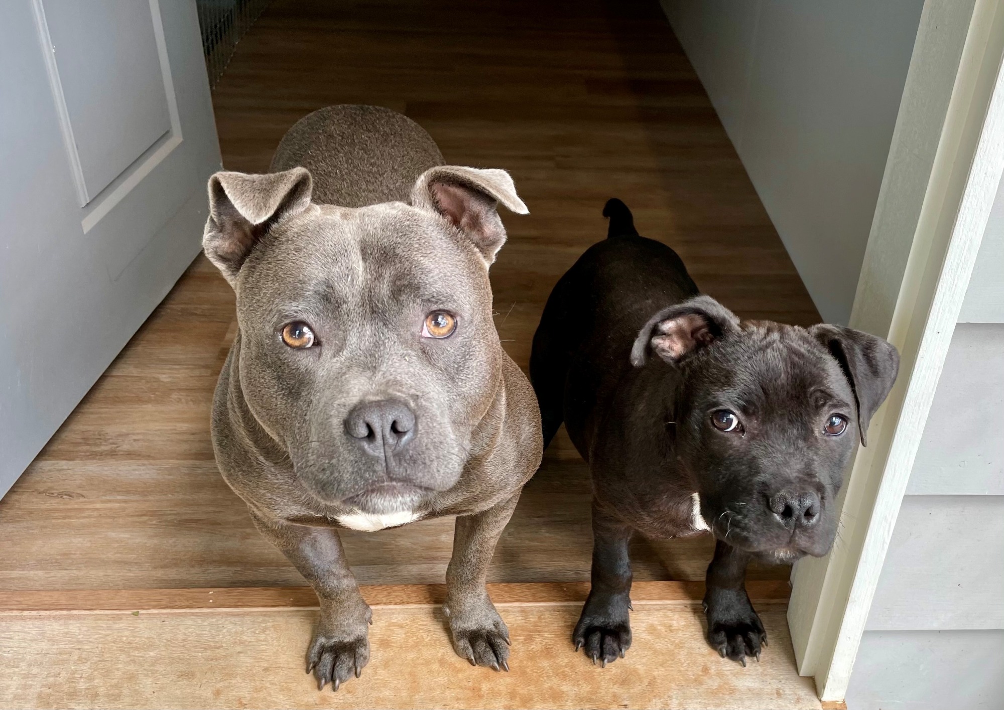 Please note, we don't usually rehome two males together so who ever adopts these two dogs need to be experienced Stafford owners.