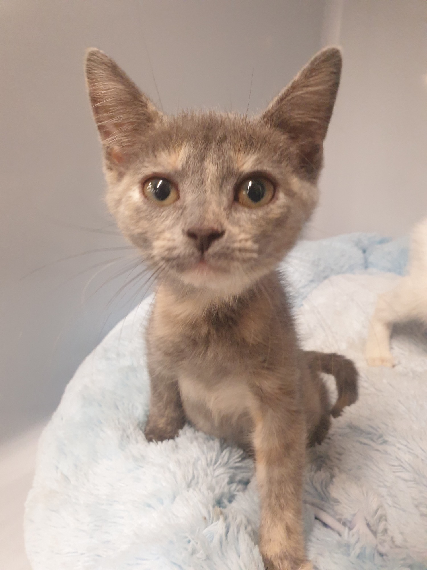 Mila is a happy and playful little girl, who spends most of her day playing with her toys and her foster siblings. She does enjoy a fair bit of attention, and would like a home with humans who are looking for a snuggly little girl. Mila would do okay in a home with children, and also gentle dogs. She MUST go to a home with another friendly feline friend, as she loves the company of other kittens.