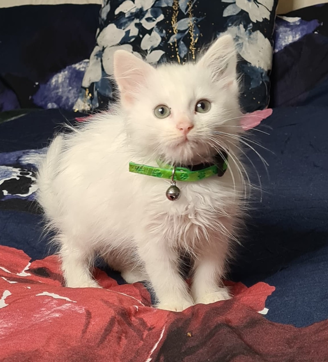 Given his coloring it is not negotiable that he must only go to an indoor home. White cats run a higher risk of developing cancer.