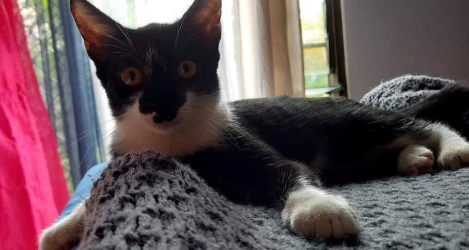 Apollo is a charming little cat who loves playing with her foster sibling. She can be timid when you first meet her, but give her some time and mince chicken and she will bounce like a happy deer. She has this tiny little meow when she wants food and pats.