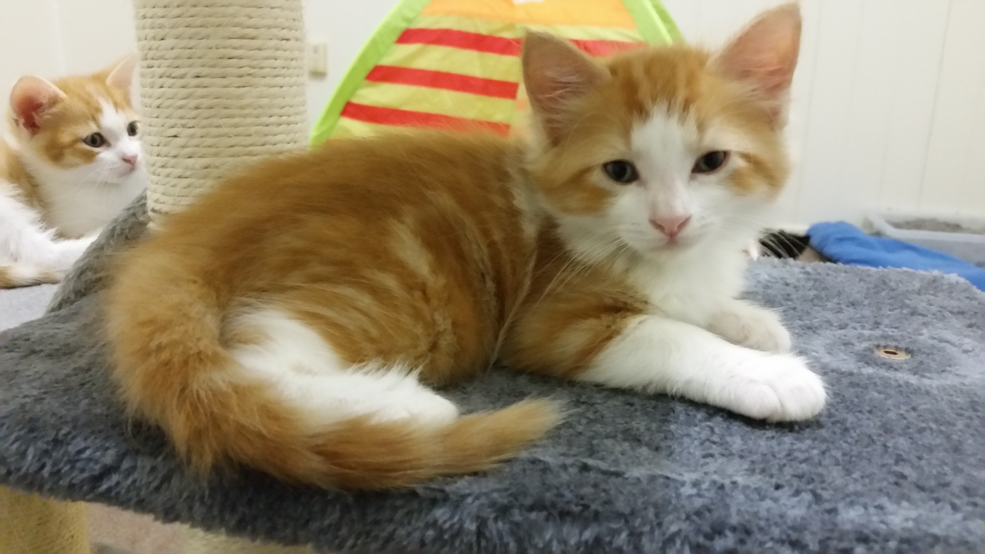 Simon will be a big fluffy cat! When he's in play mode he runs around madly and loves to climb legs. When Simon is in sleep mode he loves a lap with lots of pats and cuddles.