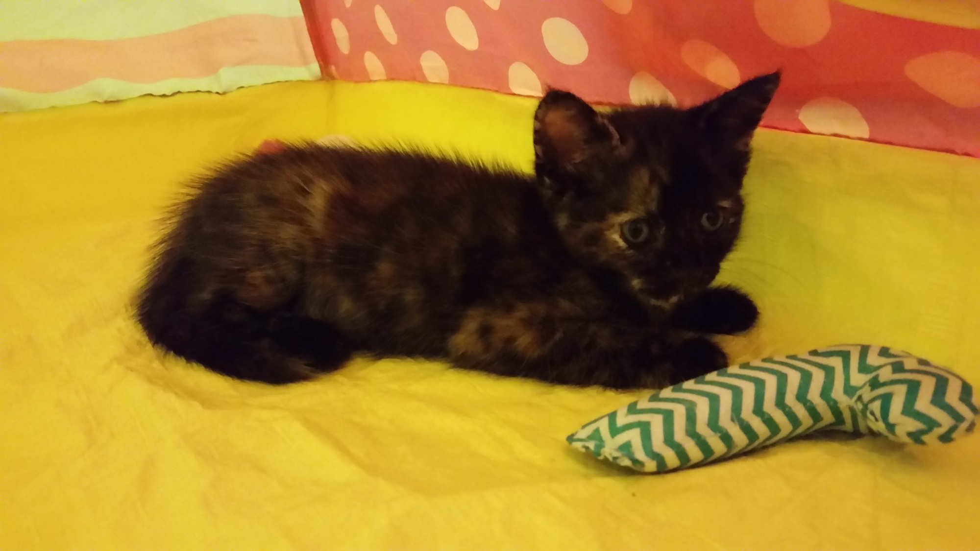 She loves to play but prefers cuddles on the lap.