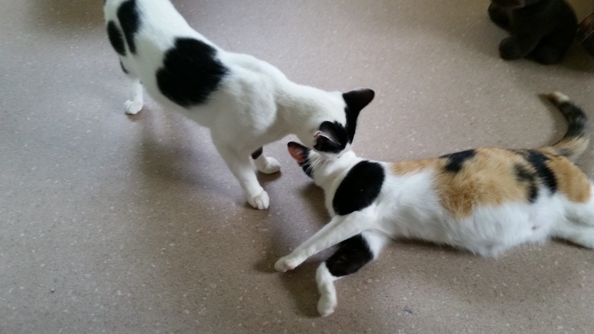 Daisy is the beautiful black and white girl, while her daughter Turtles is the stunning calico.