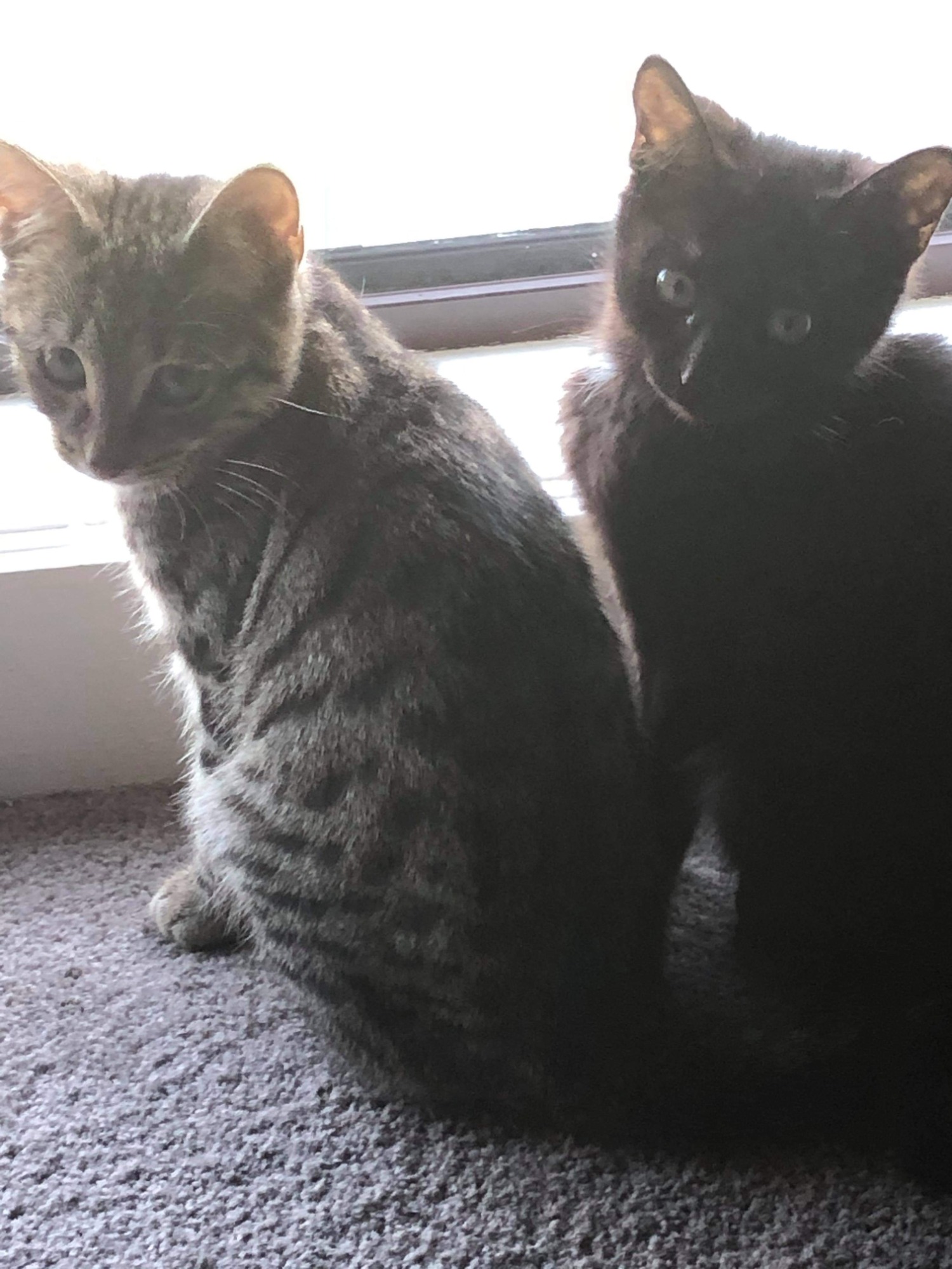 These 2 gorgeous kittens were found in a dumpster and found their way to safety in our care so Oscar and Sly are both still learning that people are nice and that they are safe, they will hide at noises or if there are new people around. Once they are comfortable though they will give you all of the love; purring, head butting, kneading and grooming are all part of the deal.