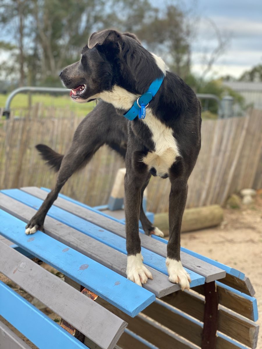 Aside from running around and having fun, I also love to roll in anything that smells 'good' (if ya know what I mean!) I am a bit of a larrikin and would be best suited to a farm/acreage where my antics won't offend anyone! Although fun is my middle name, I also love a cuddle and smooching up to whoever is available - I'm not picky! I would love a doggy playmate in my new home but they will need to be able to tolerate my boisterous play. I am dog social and get along well with all my foster siblings, big and small. I am also well behaved around livestock although I have not met any cats.