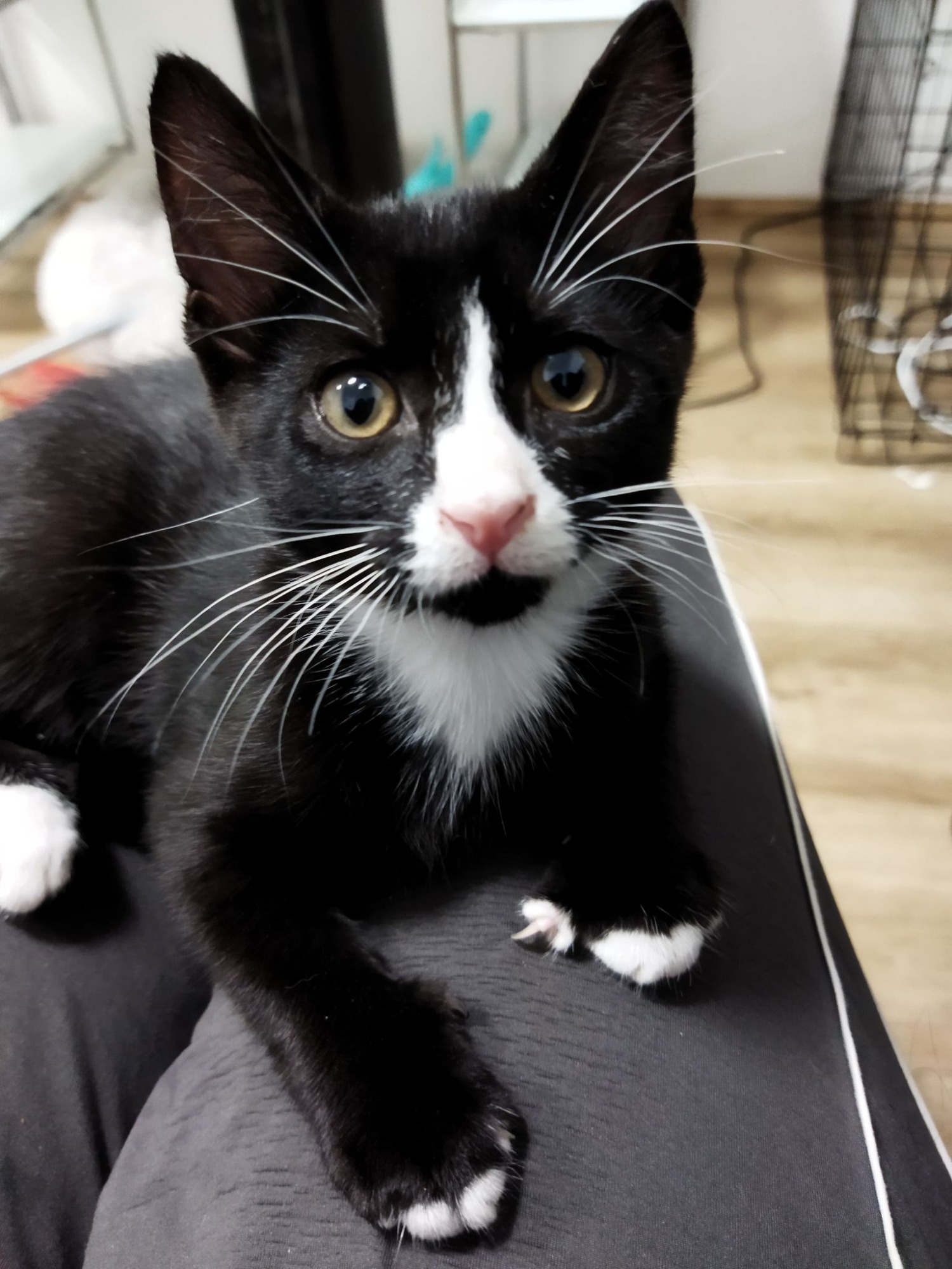 He enjoys keyboards and computer screens and also finds "bins" very comfortable to sleep in.