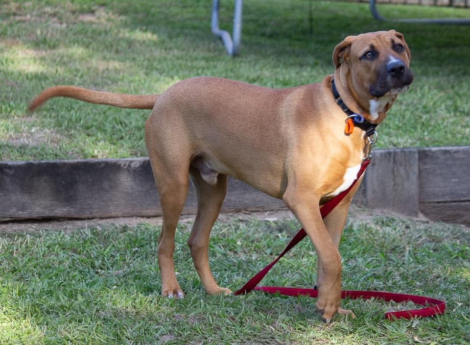 Moey is dog friendly, walks well on the lead and is already displaying good recall off-lead. He is easy to train and is food-motived. He can already sit, drop and stay and has only been in care for a short time. He is still a puppy and can be jumpy and nippy when excited – therefore we recommend a home with older children who can handle a large breed puppy and who are wanting to be a part of his training as well.