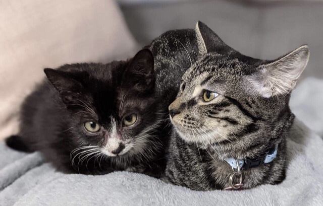His plight caught the attention of a lovely volunteer who cared for him, bottle feeding and nursing him until he moved in with his foster brother Tommy (pictured).