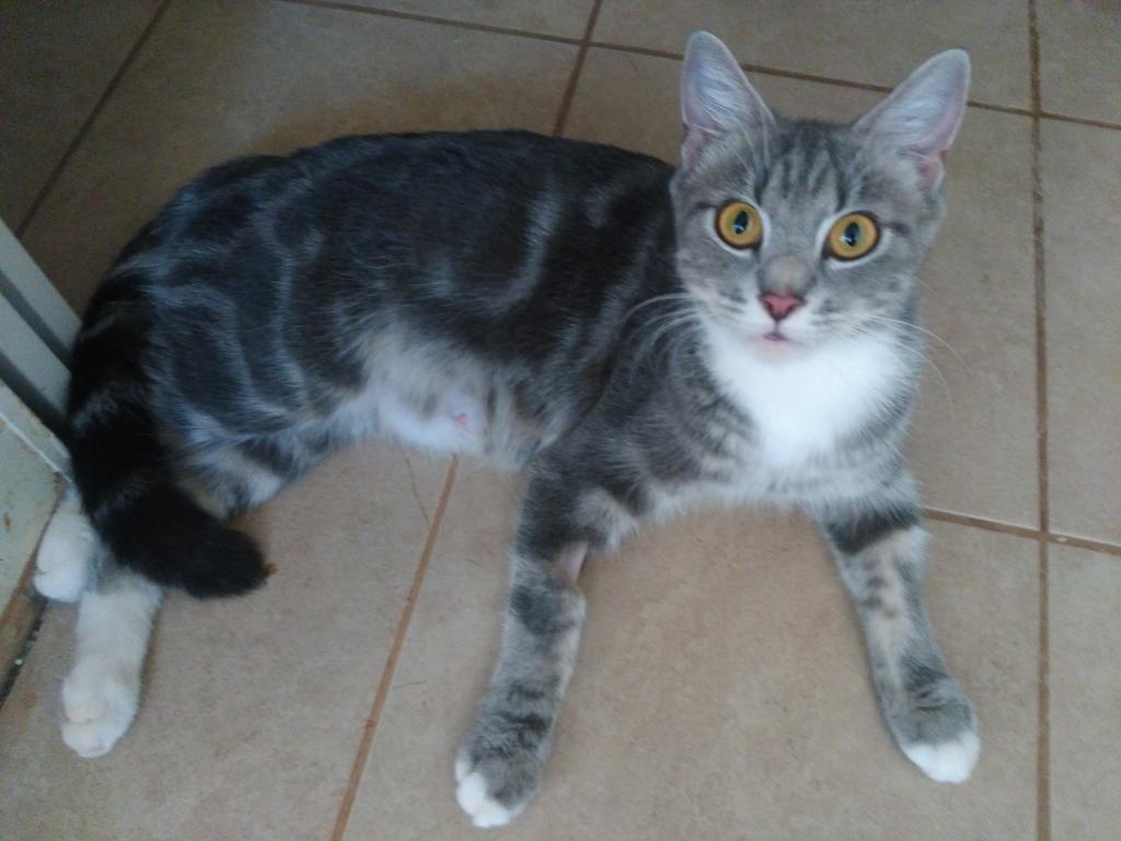 A beautiful grey tabby mumma who has done a wonderful job or raising her brood of 7. She still is in care with her 2 remaining babies - all still searching for the homes and families of their dreams. Reveka is a beautifully natured and calm cat who chose a random family residence to stop and give birth (& then raise) her babies. Reveka has had all of her vet work done and ready to bid farewell to her babies in the hopes of a second chance of love and family of her own. Reveka is truly captivating - her beautiful bright eyes and sweet pink nose with a personality to match.