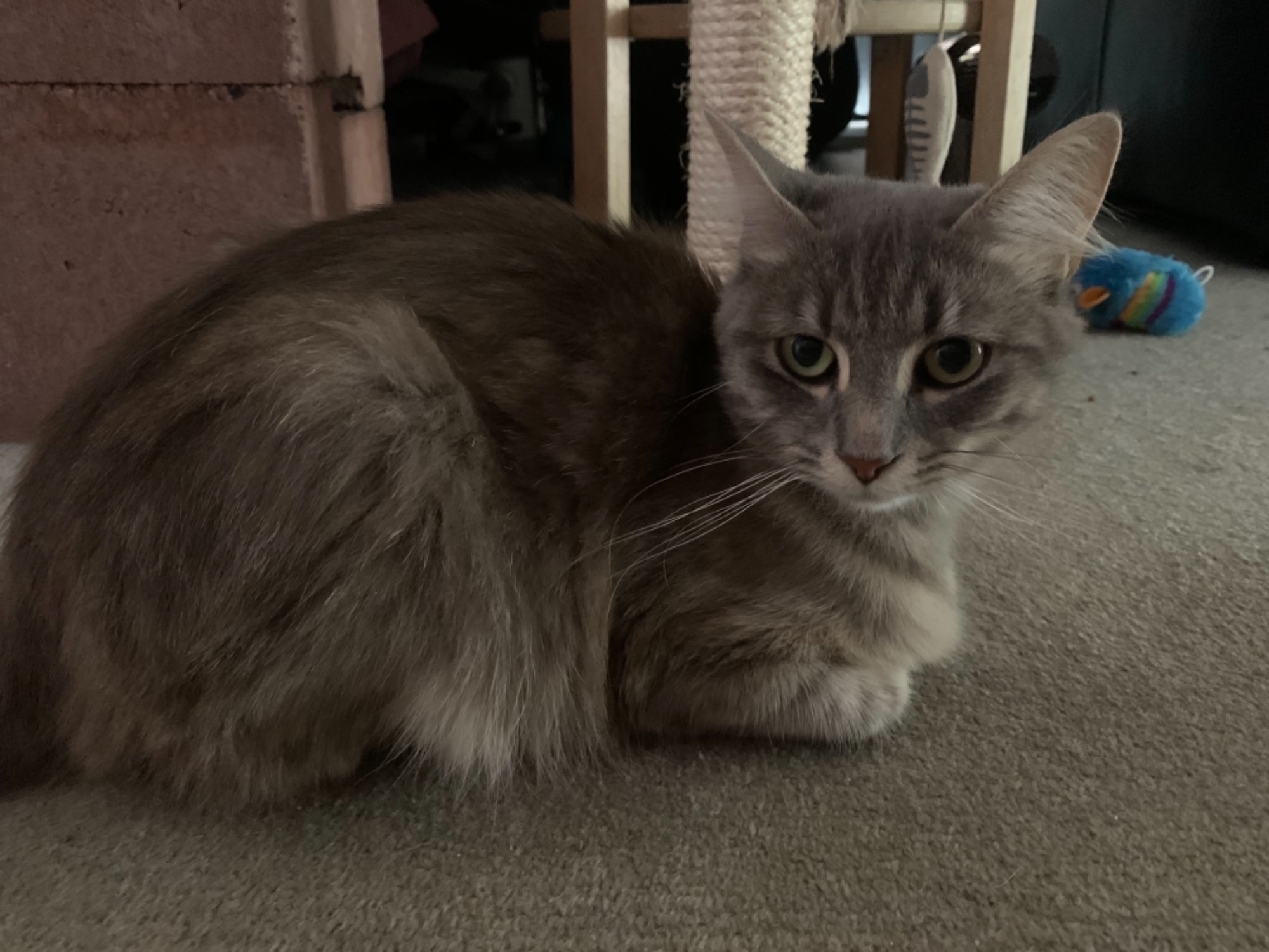 From day one Mable has always been super friendly and cuddly and loves to come up for a pat and a cuddle on your lap. She is also super playful and loves playing with you or her kittens.