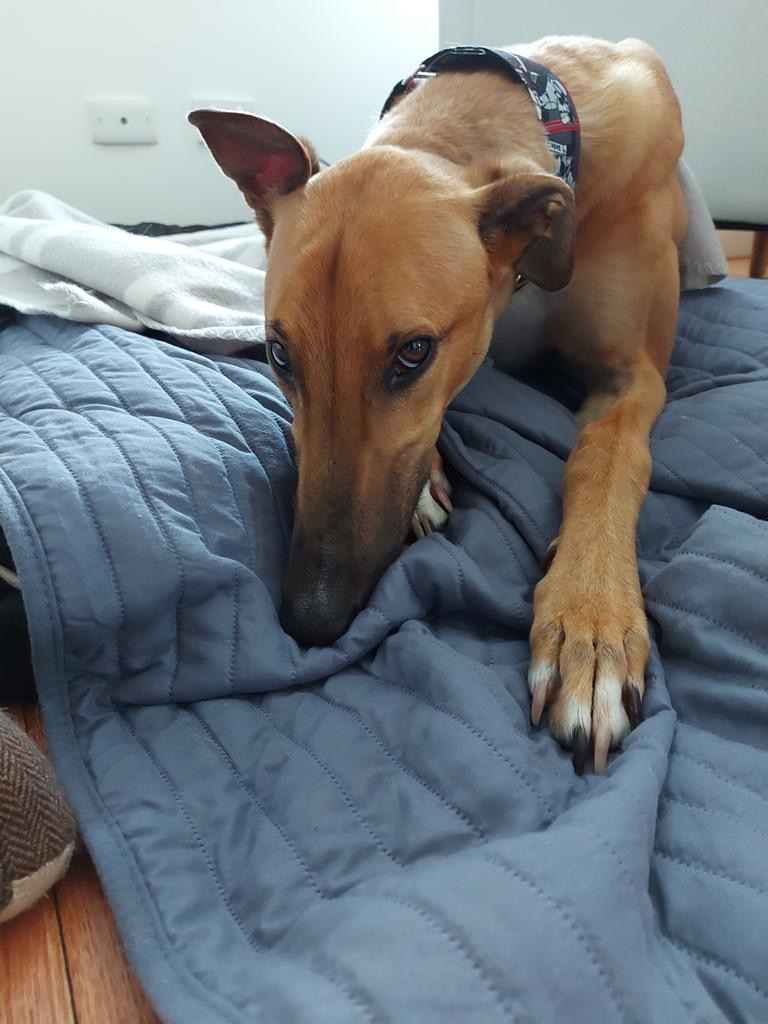 Ted greets each new day with enthusiasm, and is always adventure ready. Being a younger greyhound, Ted has more energy than your average couch potato. You won’t have to drag him around the block, but he’ll require a good snooze afterwards. Two longer walks a day would be perfect.