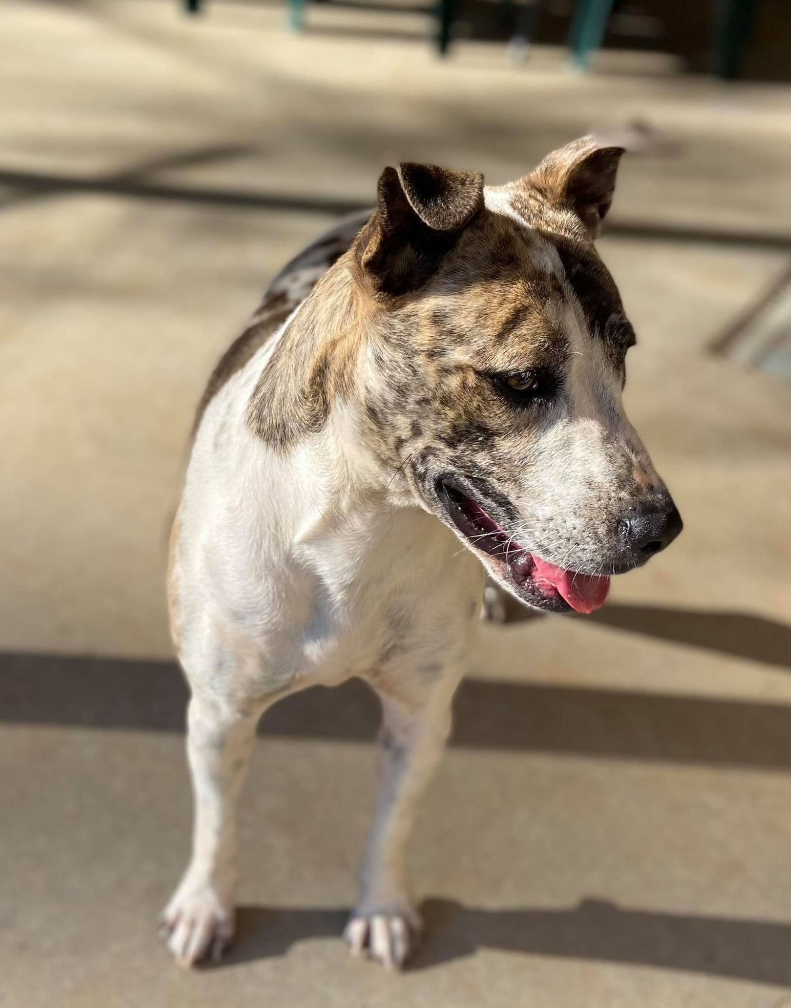 Imp 388 "Bubbles". Bubbles is an 11 month old Staffy Mix. He is a happy, family friendly, dog social boy. He was raised around children. He has been running around our shelter, between dogs in yard and no issues at all. He is unique looking look and doesn't photograph well. He was surrendered due to accommodation issues, no fault of his own. His adoption fee is $400 which includes microchipping, registration, desexing, vaccination, worming and flea treatment. Please call us on 6583 3488 or visit between 10-3.30pm today.