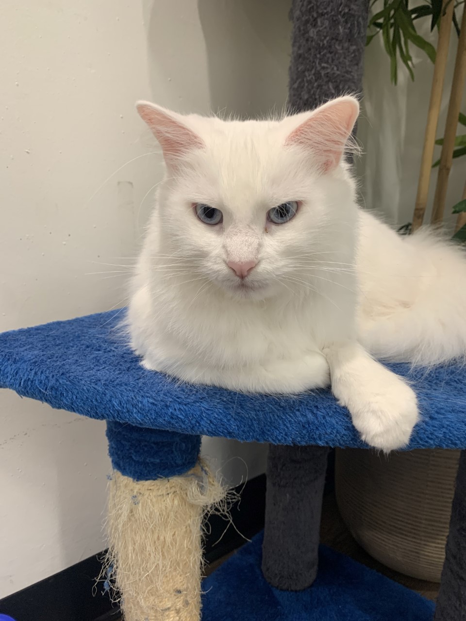 As you can see I am a gorgeous white cat with a fabulous coat. Like a lot of white cats I am deaf. But what I lack in hearing, I make up with my personality and my vocal chords!