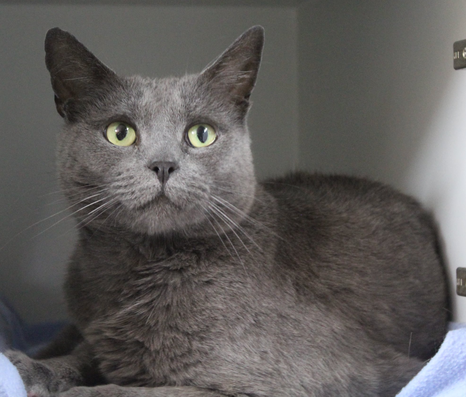 Her original owners mentioned that she is crossed with a Russian Blue and is used to an indoor/outdoor life.