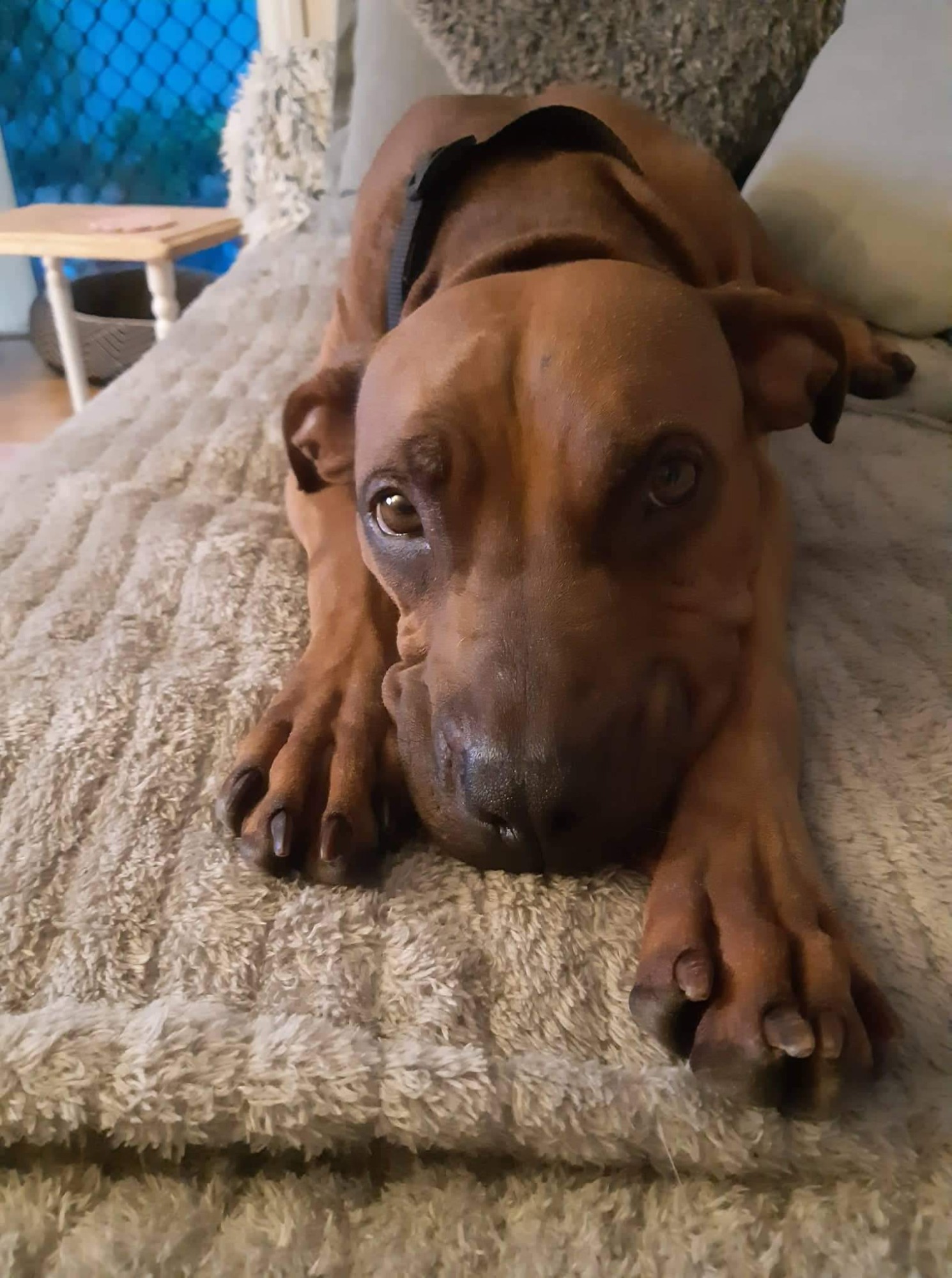 Lexi is a total love bug, her favourite place is curled up beside her hoomans, however she is a very clever girl who can follow commands (sit, drop, shake, wait) if you feel some personal space is required. She can be a cheeky girl, and really enjoys a chat.