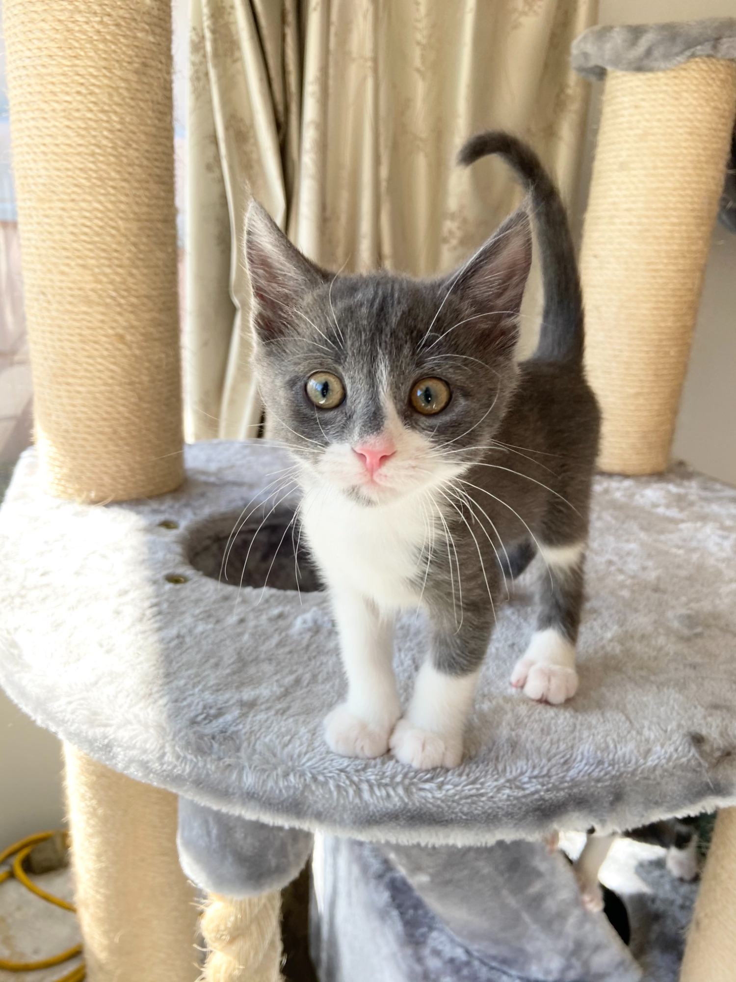 Astro loves being the centre of attention and is a shadow who is eager to be involved in anything going on around him. He has a fierce engine on him and is rarely not purring, even when rough housing with his littermates and foster siblings which is daily. When he isn't playing or being a total couch potato on his cat towers, Astro is always on one of his foster parents soaking up all the cuddles possible and showing off. He can be a little shy when first meeting new people but he soon warms up and will give some amazing cuddles.
