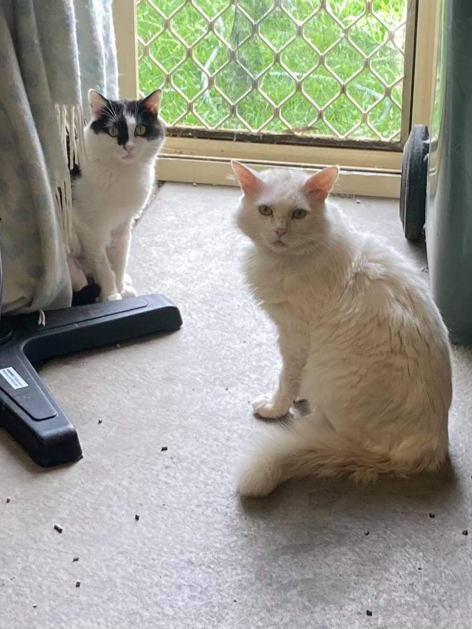 Daryl the white one is FIV positive, so need indoor only home.