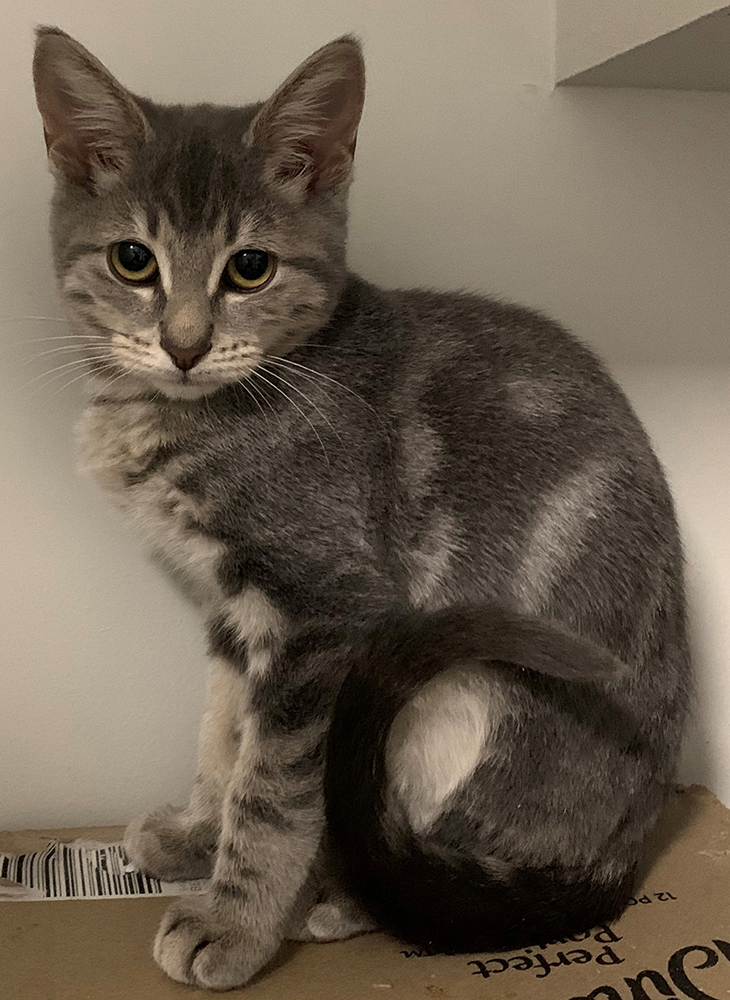 Charles was found living on the street with his brother Christopher. He is a confident kitten who enjoys human company and he will also be fine with dogs given an appropriate introduction (please ask us for details).