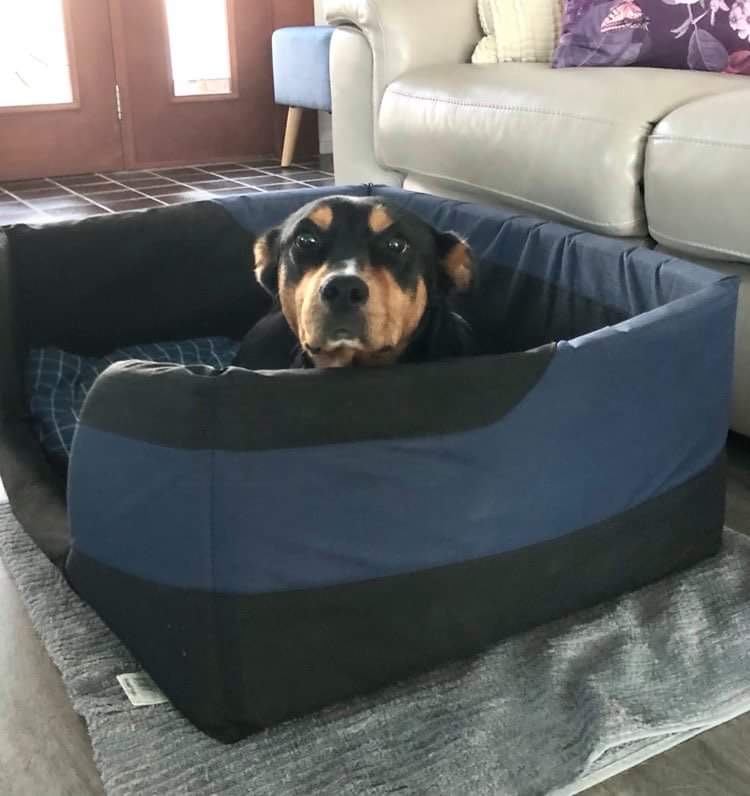Kel has a beautiful nature and although she is super shy, she still says hello to everyone she meets and will sit and wait to be patted. Kel loves to be with her people and will happily sleep inside in her bed during the day. She is great around the house and always heads for the door when it's time to ...well you know!