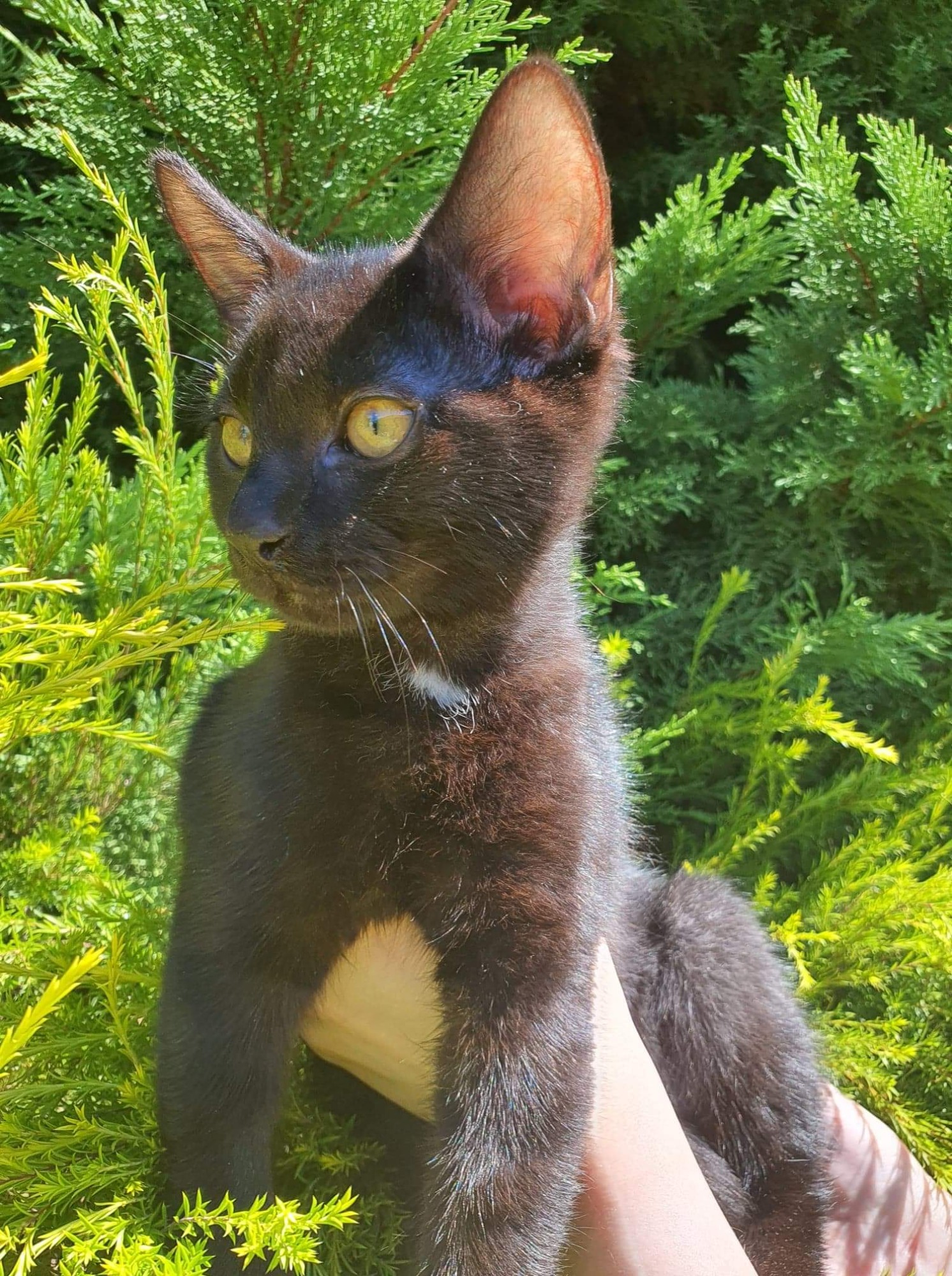 Hunter was found wandering when he was only a very small kitten and was taken to the local vet clinic. Rescue Me Whiskers & Paws were called and Hunter came into foster care. Hunter is desexed, microchipped and fully vaccinated and he has been regularly parasite treated. He is friendly, confident and loves attention! But he is also happy to lay in the window soaking up the sun and watching the world go by. Hunter is a sweet, loving, playful and affectionate boy with a HUGE purr and head bump. He is an incredibly handsome boy with his green eyes and shiny black coat with a tiny white marking on his chest. Hunter has been around other cats, dogs and children. He enjoys chasing ping pong balls and playing with cat teasers. He loves trotting around the house while you go about your daily activities and enjoys snoozing in his warm cosy bed or yours. Once he trusts you he loves to cuddle up and fall asleep on your chest. He just wants his very own family to love and love him in return.