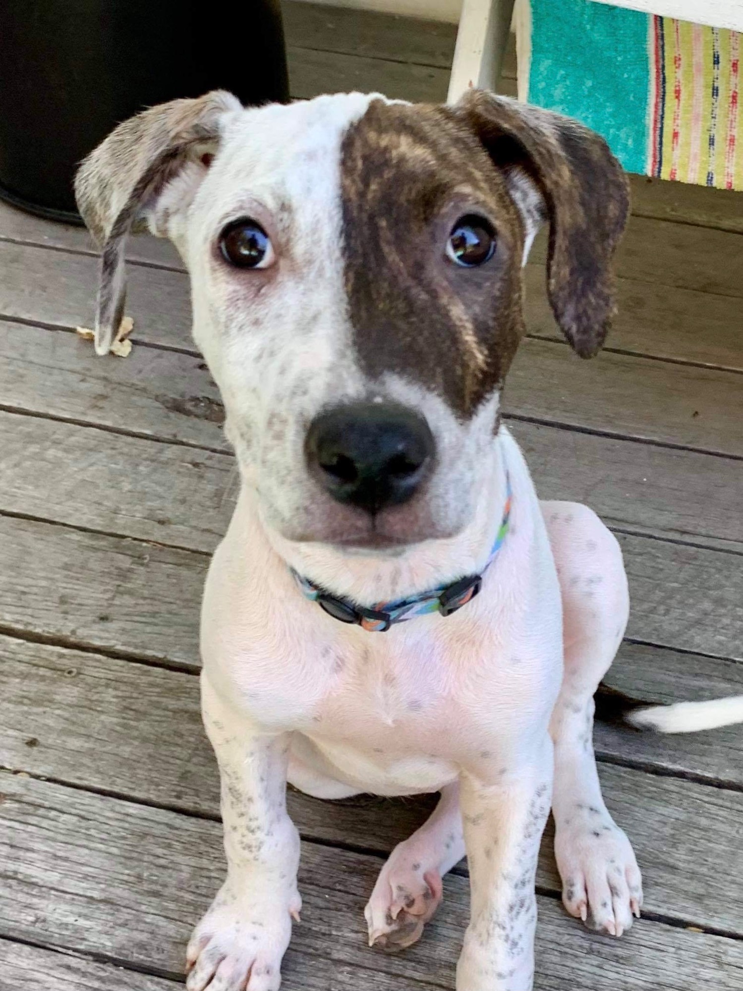 Alice will be a large dog when fully grown, so you would need to be prepared for this. She will need a medium to large size yard with height appropriate fencing, and a home where she will be treated as part of the family 👨👨👧👧🐕🐕 She is fair around her black nose so you will need to be sun safe with her in the summer months by applying sun cream to her nose to help prevent skin cancer.