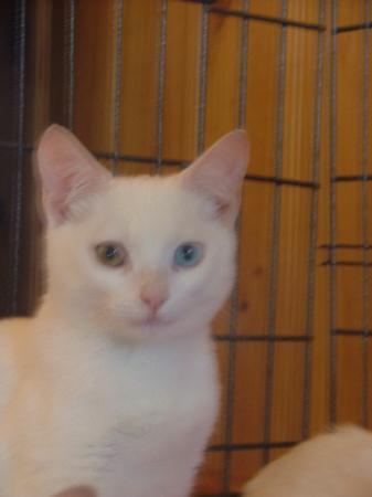 Well you can see oliver and his 2 brothers are beautiful kittens. They are also very affectionate always purring and ready for a cuddle. Oliver will have to be an indoor cat because he is pure white. Oliver's hearing may be impaired but if it is it does not worry him at all , he is just one friendly out going little kitten looking for a loving home. Oliver is litter trained , micro chipped and desexed and he is all ready to find his forever home. If you would like to give oliver a home please give his foster carer jenny a call. Emails are not regularly checked so please phone. Sorry we do not freight our animals