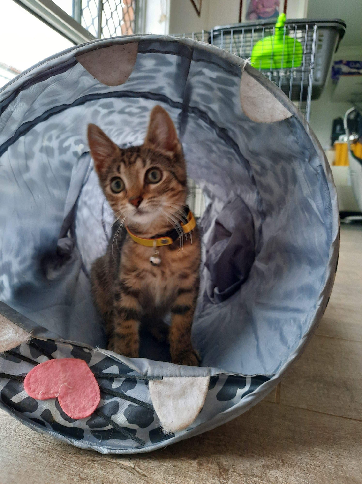Macey loves a cuddle & adores the kids in her foster home. While she loves her humans & snuggle time she is also very independent 🐈 Macey also lives with other cats & a doggy so she would suit almost any home! She loves her tunnel, playing with all the toys in the house & is a great fly catcher too 🪰