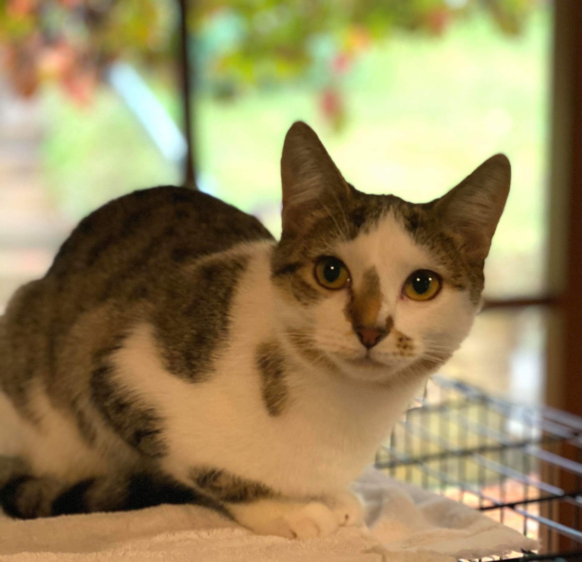 This juvenile cat is sweet, gentle and just a tad sassy! She loves lazing about the house and is keen on a lap if she can find one. Hazelnut gets along well with other cats and has a very special place in her heart for her brother Chestnut. Ideally these two will find a home together as they draw comfort and confidence from one another.