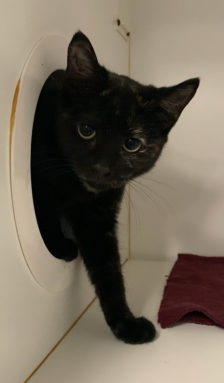 Starmooon has unusual colouring as she is a very dark tortie which is quite unique. She will do best in a home where she can adjust at her own pace, a quiet home with no small children will be ideal.