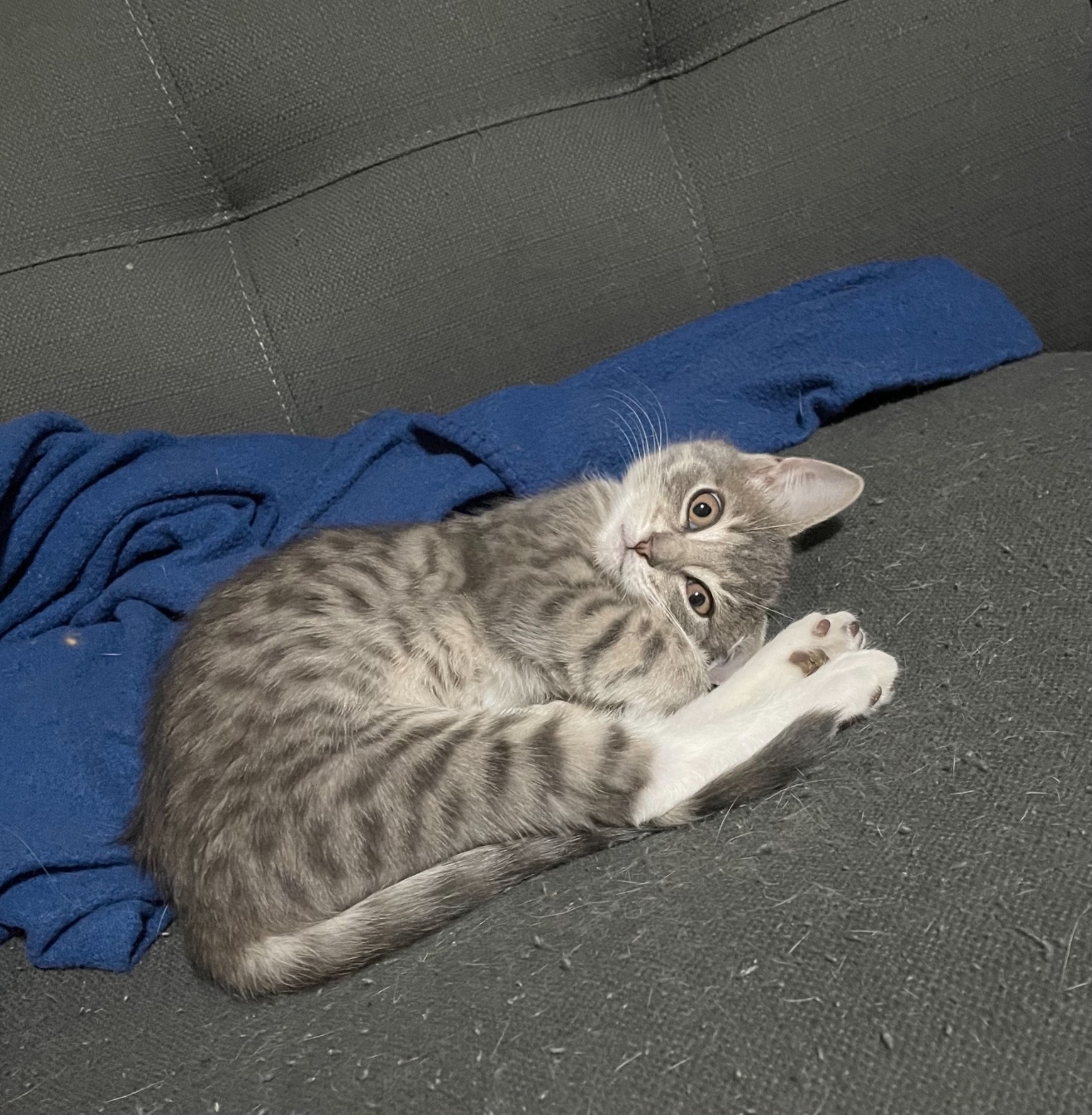 I’m a quirky little kitty that loves to be around my foster family. I love to play with my foster siblings all day long and have a nap in my foster mums arms or on the couch beside her (while she watches the footy). I love having dinner with my foster family and I sometimes sneak a piece of chicken when they’re not looking.