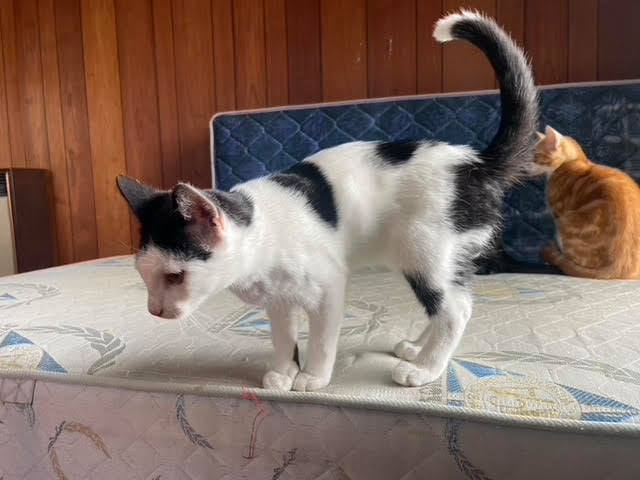 Pagani is anything but just black and white. You will find the most stunning details such as his white powdered left ear, a black tail with single long white hairs all the way through to the snow white tip and multiple coloured toe beans. Be warned to not underestimate his sneakiness, he will always be where you least expect him, one moment behind you, the next he’s ahead even if you’re sure you closed the door. His jumps and stunts during play time are so phenomenal, you might as well call him the Paganini of catch the feather toy. For relaxation he will seek cuddles and fall asleep close to you, showing you his happiness and affection by sending out waves of calm soft purrs.