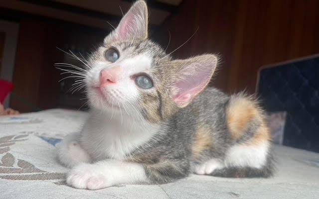 Arrietty is a gorgeous 'torbie' (tabby and tortoiseshell combined) and white kitten, looking for her forever home!